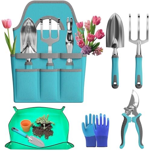 This garden tools set from ERFEI combines functionality and durability in a compact design. Each tool is crafted with rust-proof materials, ensuring that your investment lasts through seasons of planting and pruning. The non-slip rubber grip enhances comfort, reducing hand fatigue during extended use, which is essential for gardeners who spend long hours tending to their plants. Additionally, the inclusion of gloves and a repotting mat makes this set a comprehensive solution for various gardening needs.