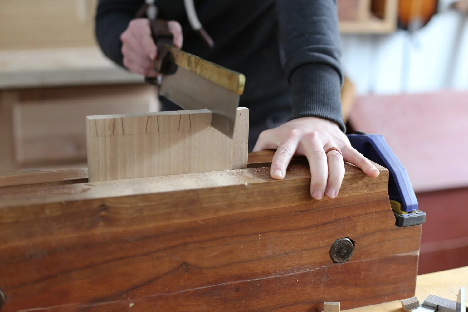 - Dovetail saw – for precise cutting of pins and tails