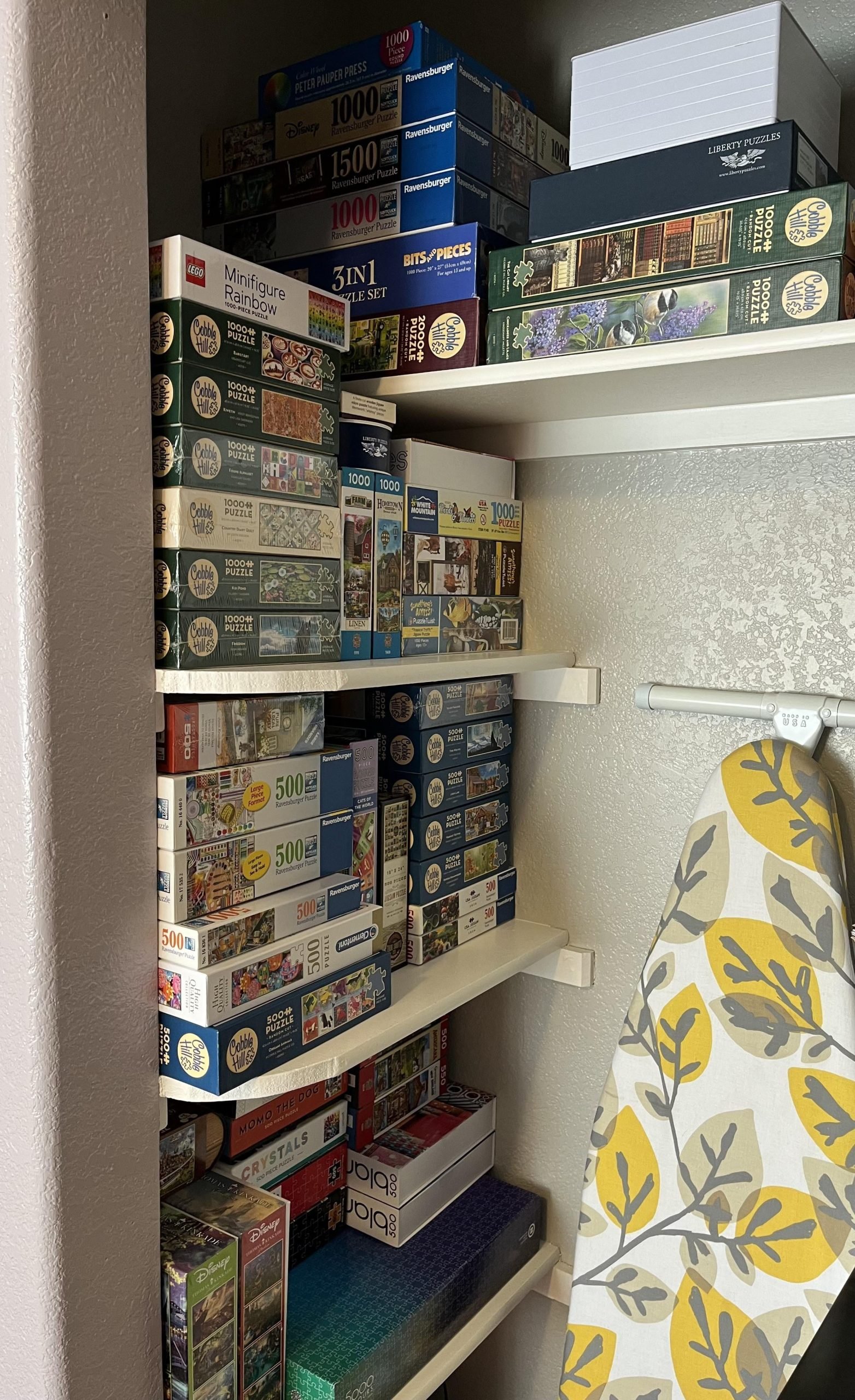 Organizing jigsaws in racks helps save space and keeps puzzles easy to find. Good organization lets you store more puzzles in less room.