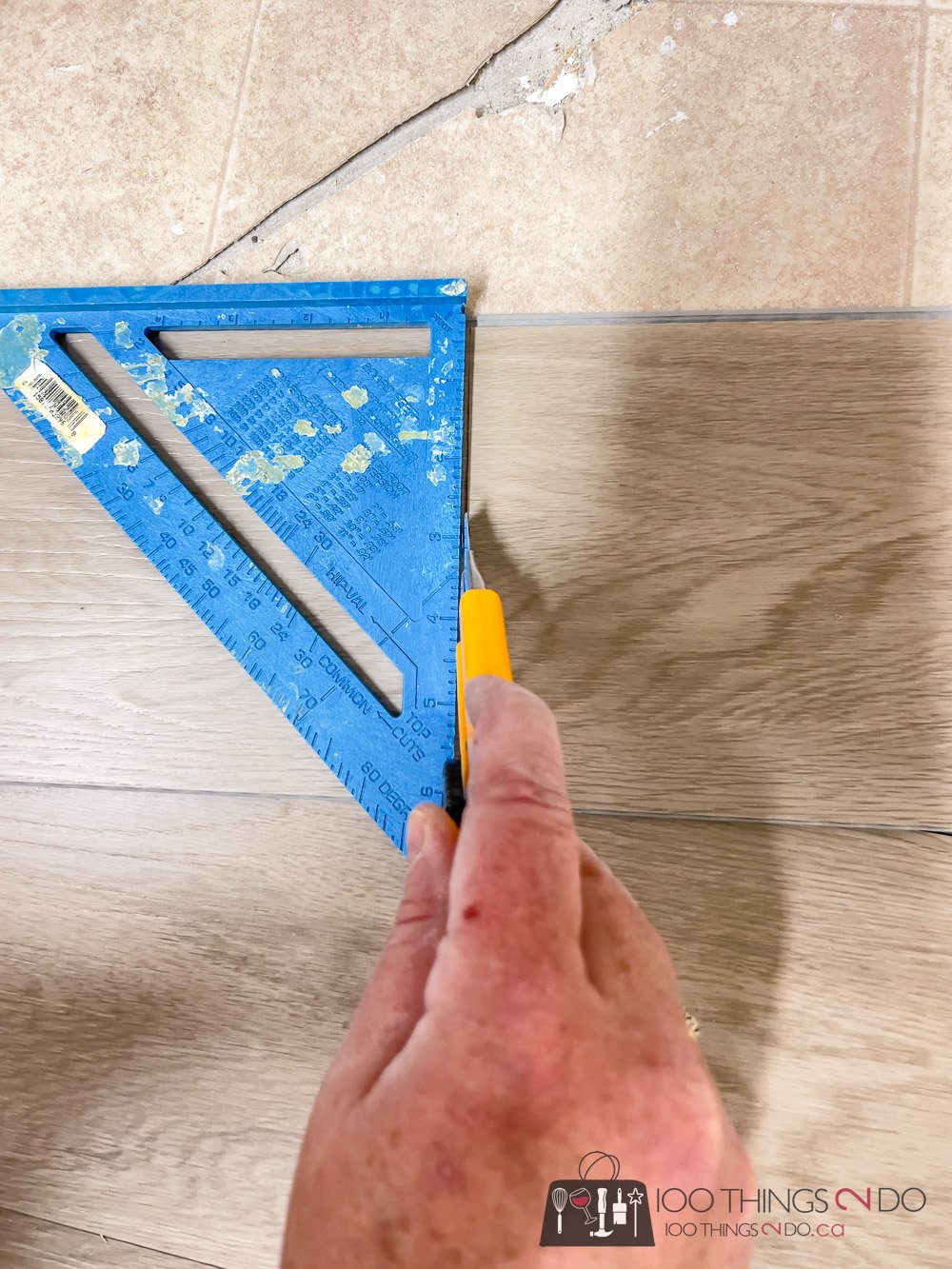 Use a sharp pencil to make thin, clear marks on your flooring material. Thick marks can cause mistakes.