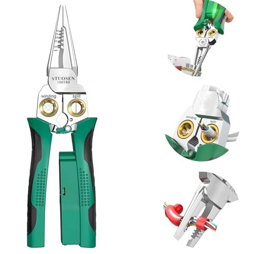 Additionally, the tool’s plier, crimper, and splitter features provide comprehensive support for wire manipulation tasks, making it a valuable addition to any electrician’s toolkit. The ergonomic design ensures comfort and reduces hand fatigue, which is especially beneficial during prolonged use. Overall, this multi-functional tool offers excellent value by combining durability, versatility, and user-friendly features in one compact green package.