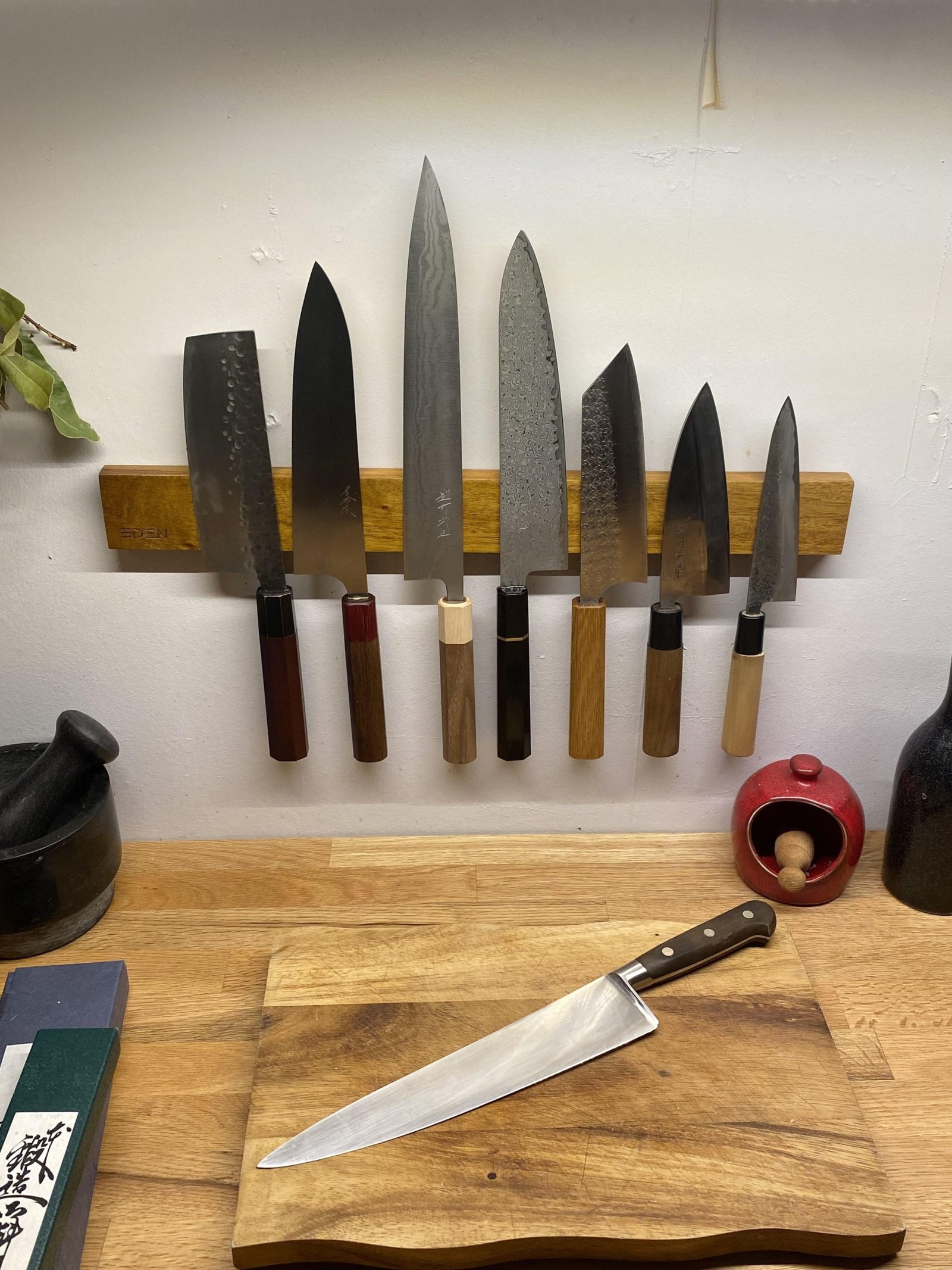 Magnetic strips attach to walls or workbenches. They hold metal knives firmly and keep them visible for quick access. This option saves space and keeps blades off surfaces.
