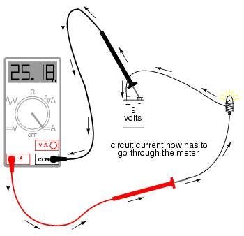 - Set multimeter to the proper amperage range
